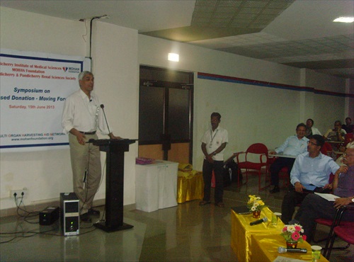 “One can begin so many things with new hopes in one’s mind” referring to this quote Pondicherry Institute of Medical Sciences (PIMS), IMA – Pondicherry and Pondicherry Renal Sciences Society joined hands with MOHAN Foundation to give momentum to the Deceased Donation programme in Puducherry. In order to do so, a Symposium on Deceased Organ donation - Moving Forward was organized on 15th June 2013 at Pondicherry Institute of Medical Sciences.