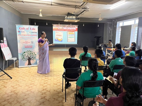 During the interactive question–answer session, students and teachers raised several thoughtful queries related to organ donation. They asked whether the brain can be donated after death and wanted to understand the psychological effects on a recipient after transplantation. Questions were also raised about the legal framework, such as why India cannot implement an opt-out organ donation system and why next-of-kin consent is required even after a person has pledged. Students were curious about medical aspects too, asking whether a person can stop taking immunosuppressant medication after some time, if the liver can be donated to multiple people, and whether paediatric patients can become donors. They also explored future-oriented topics, including technological developments in organ donation, whether artificial organs will affect organ donation in the future, and if grafting can be attempted again when a previous graft is rejected. All these questions were discussed in detail, helping students understand the scientific, ethical, and procedural dimensions of organ donation.