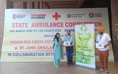 The Indian Red Cross Society, Punjab State Branch, organized a four-day residential First Aid Training Programme at Chandigarh University, Gharuan, Punjab, from March 10–13, 2026. The programme featured a State Ambulance Competition and practical training sessions, equipping university volunteers and nursing students with essential emergency response skills.