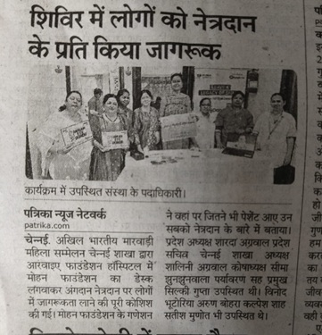 MOHAN Foundation extends its heartfelt appreciation to Mrs. Sharda Agarwal, President, ABMMS Chennai Chapter, and RYA Cosmo Foundation Hospital for their partnership and support. Special thanks are also conveyed to Mr. Vinod Bhutoria, Manager, for his coordination and hospitality during the event.