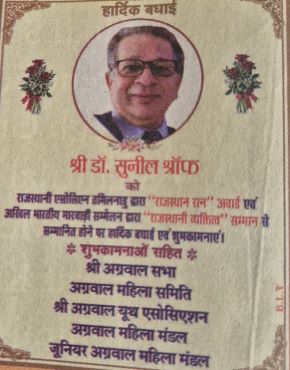 Several community organisations, including Agrawal Sabha, Agrawal Mahila Samiti, Agrawal Youth Association, Agrawal Mahila Mandal, and Junior Agrawal Mahila Mandal, extended their congratulations, expressing pride in his achievements.