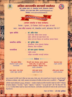 MOHAN Foundation Managing Trustee - Dr. Sunil Shroff, eminent transplant surgeon, organ donation pioneer, and social advocate, was felicitated by the Akhil Bharatiya Marwari Sammelan on the occasion of its 91st Foundation Day समारोह, held at the Kala Mandir Auditorium, Kolkata, on Thursday, 25th December 2025.