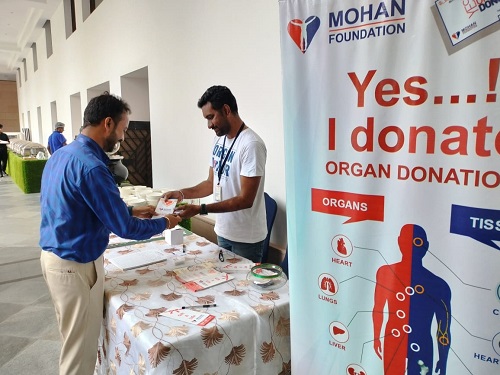 MOHAN Foundation’s Ms. Arshiya Fathima H (Helpline Counselor) & Mr. Ganesh C (Marketing coordinator) set up an information desk and manned it from 10 am to 2:30 pm. Green ribbons, information brochures, registration forms, donor cards and standee were kept at the information desk.