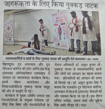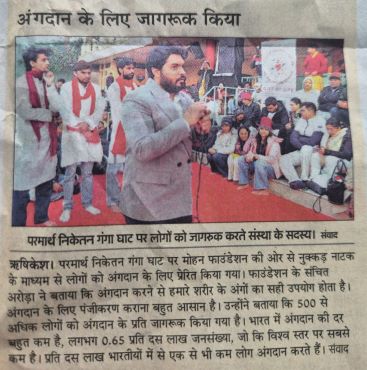 On January 15, 2026, the first programme was conducted at THDC India Limited, Rishikesh, where the Nukkad Natak effectively engaged corporate staff and enhanced their understanding of organ donation. The second programme was held at Parmarth Niketan Ghat in collaboration with Lions Club Rishikesh Devbhoomi during the Ganga Aarti. The street play attracted a large public gathering and significantly amplified the awareness message among devotees and visitors.