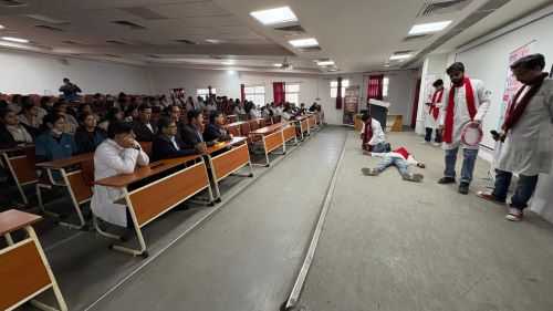 On January 16, 2026, the third programme was conducted in the waiting area of Himalayan Hospital, Dehradun, reaching hospital staff, medical students, patients, and their attendants. The fourth programme took place at Government Doon Medical College and Hospital in collaboration with SOTTO, Uttarakhand. Medical, nursing, and paramedical students, along with faculty members, actively participated in the session.