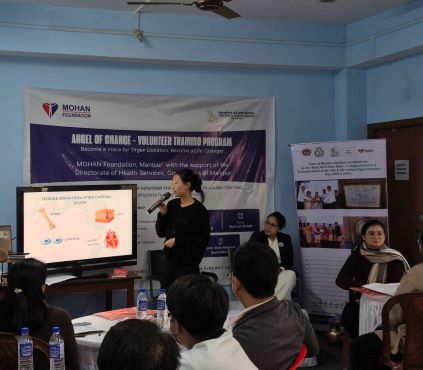 On December 16 and 17, 2025, MOHAN Foundation under the aegis of the Directorate of Health Services (DHS), Government of Manipur, organized a two-day Angel of Change Volunteer Training Programme at the State Medical Board Room, DHS, Imphal. The programme aimed to equip volunteers, healthcare professionals, medical social workers, and students with essential knowledge and skills to promote awareness on deceased organ donation at the community level.
