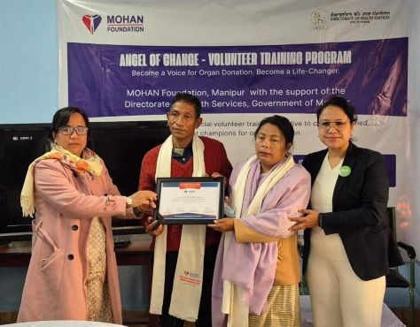 During the programme, Ms. Laishram Monica Devi, Project Coordinator (Northeast) and Project Lead, Manipur, MOHAN Foundation, was felicitated by the Director of Health Services in recognition of her leadership and dedicated contributions toward strengthening organ donation initiatives in the state.
