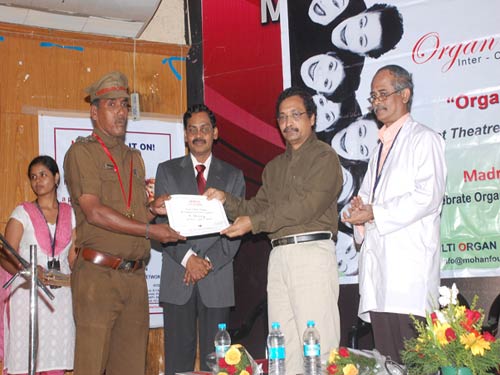 Thiru.V.K.Subburaj I.A.S., Principal Secretary, Health & Family Welfare, Govt. of Tamil Nadu, was the Chief Guest at the function. He honoured the nurses, lab technicians, helpers and police personnel who have helped with the organ donation process at Government General Hospital. He said that in 2008 the government had put into place procedures (G.Os) to be followed for the deceased donation programme and medical teams were also in readiness to perform transplants. A significant link had been the appointment of Transplant coordinators from MOHAN Foundation at GH who counsel families and facilitate organ donation and retrieval.