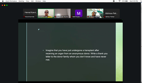 The trainees asked their queries to the guest faculty. Most of the discussions were on grief counseling, post transplant care, mental health issues and how to overcome an organ failure patient, what are the ways to approach hospitals, how do doctors decide which organs are worthy of retroeval, does a person have to decide the organs to be donated at time of pledge. Dr Honey and Dr Akanksha narrated their transplant stories. These were eye opening stories and were much appreciated by the trainees. Ms Ranjini explained the importance of care to the family in hospital setup and clear communication even when donation consent is not given.