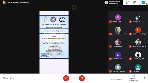 On 27th November 2020, MOHAN Foundation was invited to conduct an online awareness session on organ donation for the NSS students of SGGS College to mark the celebrations of Indian Organ Donation Day.