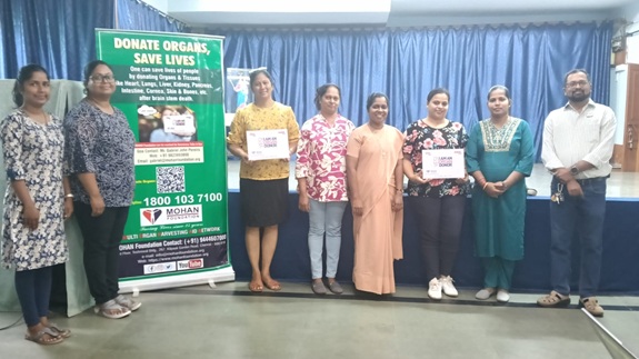 On November 13, 2025, Mr. Gabriel Pereira, Organ Donation Ambassador with the MOHAN Foundation, delivered an informative session on organ donation to the teaching staff at Auxilium Primary School, Aldona, Goa.