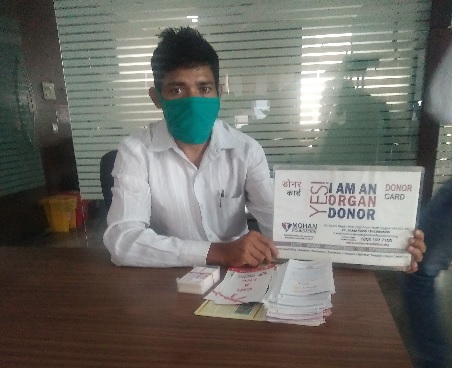 On 12th August 2020, MOHAN Foundation set up a stall to spread awareness about organ donation in the Jeevan Jyoti Blood Bank at Laxmi Nagar in Nagpur. Information brochures, donor cards, standees and a banner, were displayed in the stall manned by Mr. Bulu Behera, Transplant Coordinator from the Foundation.