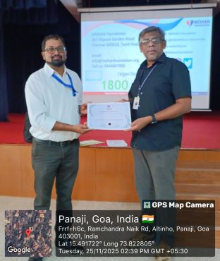 On November 25, 2025, Mr. Gabriel Pereira, an Organ Donation Ambassador from the MOHAN Foundation, conducted an awareness talk on organ donation for the students at the Nirmala Institute of Education (DHM) in Panjim, Goa.