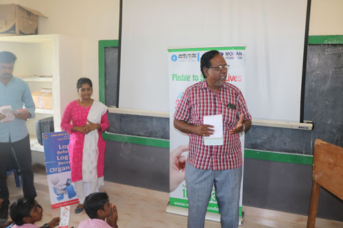 MOHAN Foundation was invited to the Government High School, Kilambakkam to deliver an awareness talk on organ donation to 9th and 10th standard students on 22nd October, 2018. The program was organized by Ms. Hepzibah Synthiah a former intern of MOHAN Foundation. The talk was delivered by Ms. Kaviya – Intern from MMM College and Mr. Siva Shankar, Helpline Executive – MOHAN Foundation. The program which began around 10.30 AM lasted for 2 hours. The Headmaster welcomed and introduced the MOHAN Foundation team to the teachers and students.