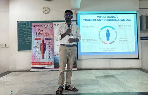 The idea of organ donation, what ca be donated under different circumstances, brain death, the time element, how to register as a recipient, how to locate a hospital with a transplantation license, myths and facts, and how to avoid scams were all covered by Mr. Ganesh. A film titled "Understanding Brain Death" was streamed for greater comprehension.