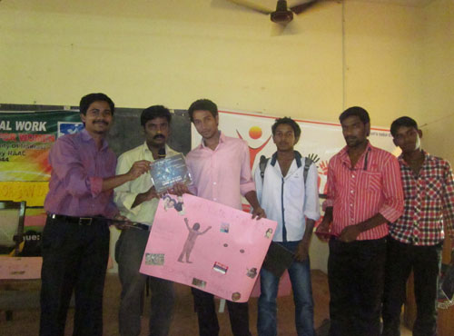 After the talk Mr. Jeyabal, Transplant Coordinator conducted a group activity with the students. The students were divided into five groups with 7 members in each and they were assigned a task of conceptualizing and creating posters with the aim of promoting organ donation. They were given 30 minutes to complete the task. 5 creative posters with messages were created and each group presented it to the gathering.