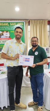At the information desk, Mr. Pereira engaged with attendees, explaining the process and importance of organ donation. He clarified that organ donation is possible only when a person is declared brain dead, provided the organs are medically suitable and family consent is obtained. He also spoke about body donation for medical research and the possibility of tissue donation in cases of circulatory death at home.