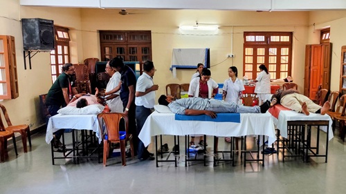The camp, supported by Dr. Carlos Medical Stores, Aldona, was held from 10 AM to 1 PM and saw participation from 19 parents and members of the public who came forward to donate blood.