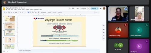 Dr. Hemal then delivered an informative talk on Cornea Donation, highlighting the procedure, importance, and the impact of giving the “Gift of Sight.” Following her talk, Ms. Riya Singh, Intern at MOHAN Foundation, presented an engaging session on Organ Donation, explaining the types of donations, the process of registration and pledging, as well as the legal framework governing organ donation in India.