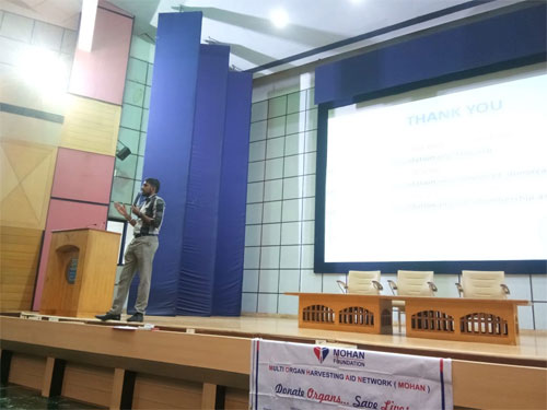 He explained in detail the need for organ donation and organs that can be donated. Further he explained the different stages of organ donation (living, natural death and brain death), Brain Death and its causes, Transplant Law and the Government Authority of Tamil Nadu (TRANSTAN) who allocates the organs, and at last ended the session with use of the donor card. The session went on for an hour.