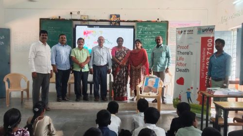 On November 14, 2025 – A tremendously successful organ donation awareness session was held at the Zilla Parishad High School (ZPHS), Nallavelly, on Children's Day, November 14, 2025. Despite facing transportation challenges due to the lack of timely bus services to the village, the program proceeded smoothly, demonstrating the dedication of both the organizers and the school community.