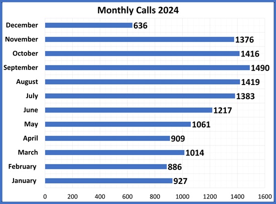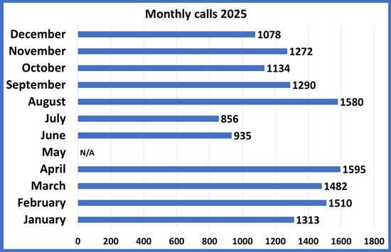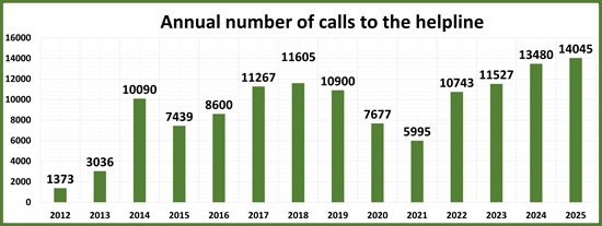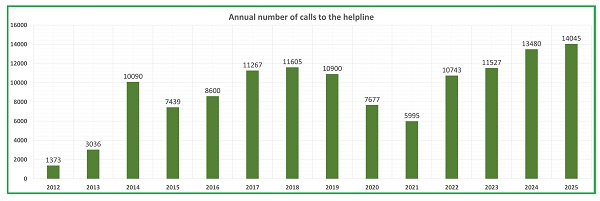 | Annual total calls to the Helpline |